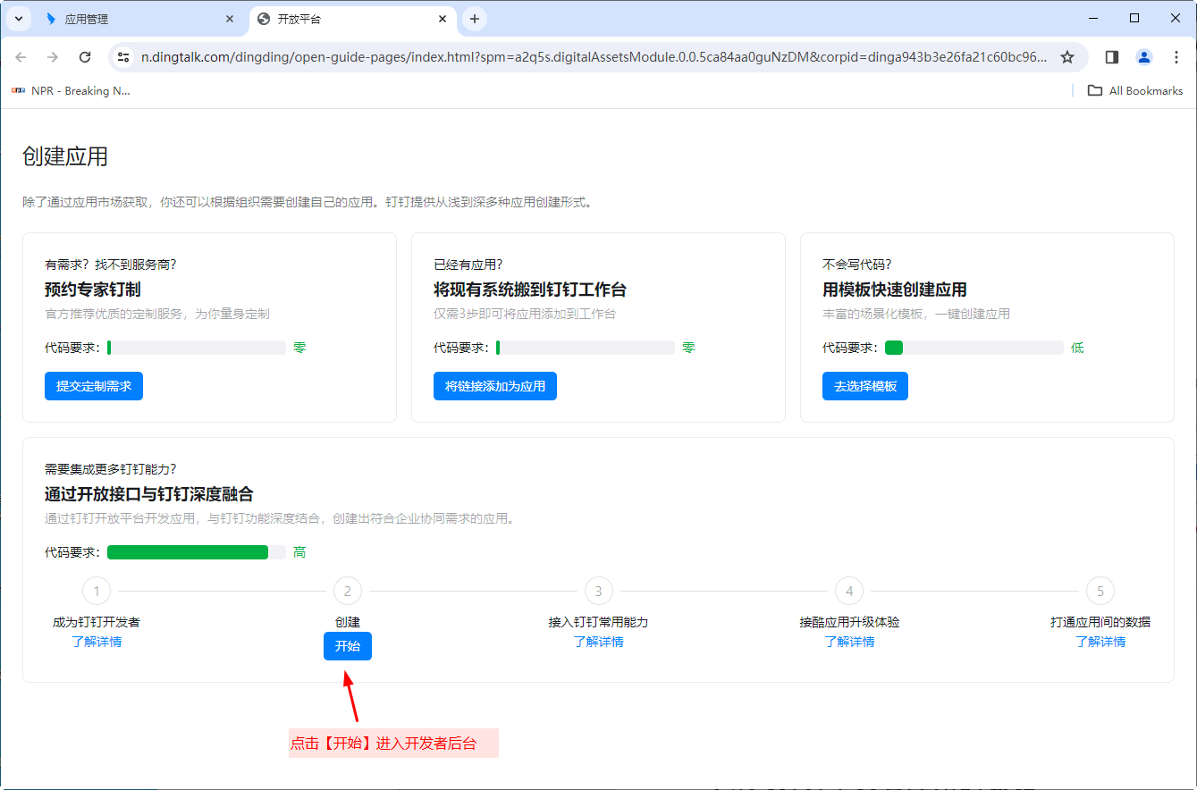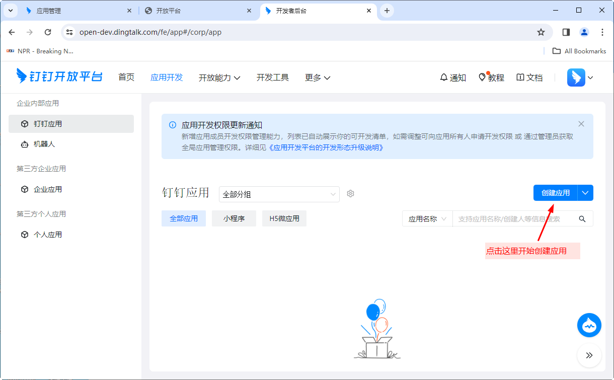 本节讲述如何在钉钉中创建自建应用