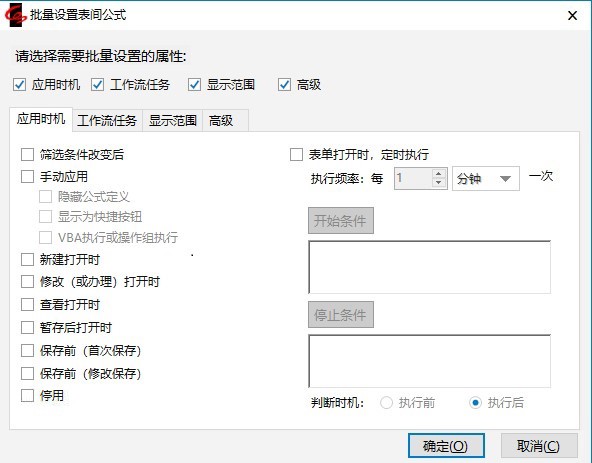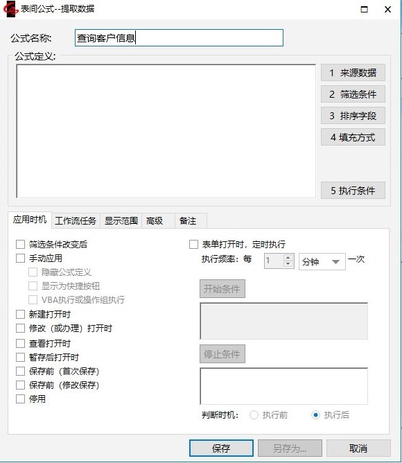 说明:【应用时机】中的【定时执行】勾选并设置【执行频率】后,在填报有此提数公式的表单时,每间隔设置的时间,则执行一次此提数公式。