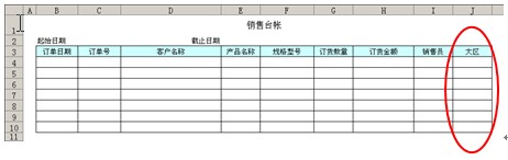 - 修改一下《销售台帐》的表样,在右方增加一列:大区
