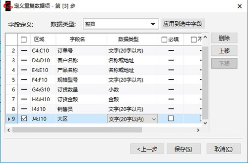 5.设置“大区”的数据类型,然后点【完成】