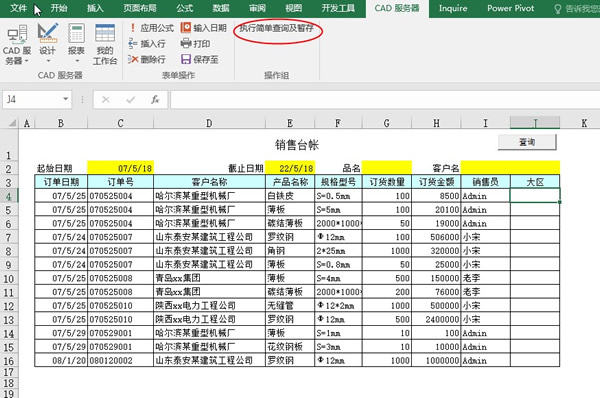 好了,现在再去填报一下《销售台帐》,应用“简单查询”表间公式,观察一下排序的效果。