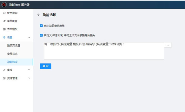 1.若企业微信,钉钉等收到的工作流提醒消息头默认的内容不符合需要,想要自定义显示的内容,也可在此处设置“自定义微信/钉钉中的工作流消息提醒消息头”: