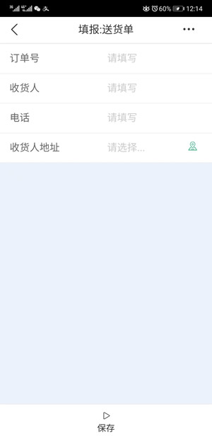 当他看到填报这张送货单的时候,点“送货人地址”旁边的位置按钮,就会显示出百度地图来,可以在地图上选择目的地位置,(通过移动标注或选择列表中地址),则收货人地址也会相应改变。