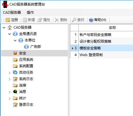 系统管理台“安全”中的“账户与密码安全策略”、“设计者分配权限策略”、“模板安全策略”,这三个安全策略为全局用户的安全策略(仅对全局通讯录中用户生效)。策略的设置内容可参考14章中安全策略内容。