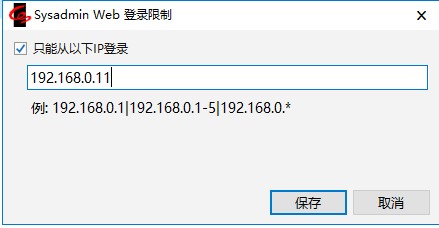 sysadmin用户WEB端登录,希望限制在哪台机器Web端登录则设置机器对应IP。