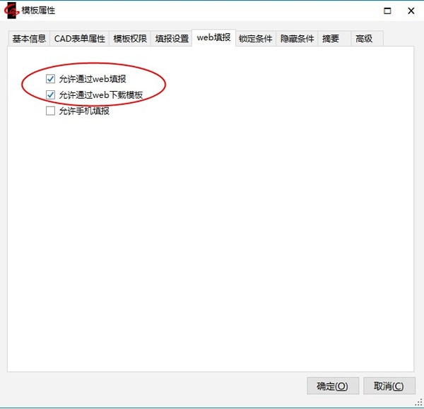 为了使得一个模板可以在填报网站上通过网页进行填报,需要做两处设置。首先,在模板属性的“Web填报”选项卡上,要勾选“允许通过web填报”,否则,在填报网站上只能查询该模板已有的数据,但是不能对其新建表单。
