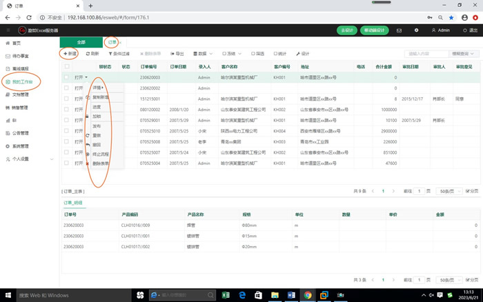 - 右侧分类树形,点击要填报的模板名称,右侧列出该模板已有的数据。在每条数据的左侧第二列,是一个“打开”链接,点击此链接则打开相应的表单;“打开”链接旁边是一个下箭头,点击这个下箭头,会显示出弹出菜单,点击里面的链接则针对当前表单进行相应的操作。
