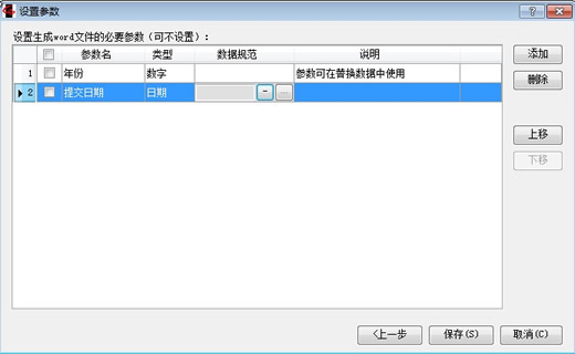 2.在表间公式和生成word文件时如需使用“输入变量”,则选中“word参数”,点击【新建】按下图内容设置参数。如不需要则可不设置“word参数”。