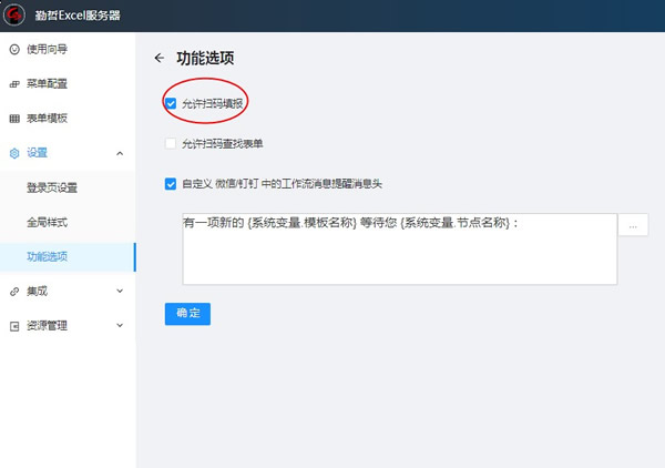 若系统内用户填报,需要在移动端设置中勾选“允许扫码填报”选项。(可取消匿名填报相关设置)