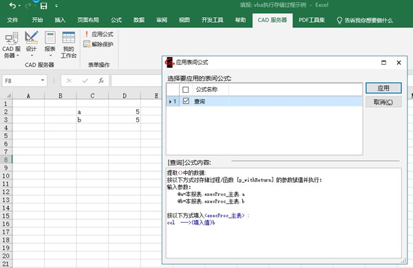 我们以“VBA执行存储过程示例” 模板为例讲解表间公式如何应用存储过程查询。