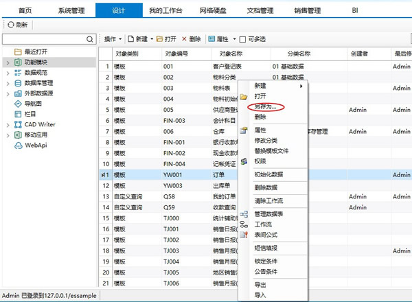 我们以订单模板为原型用【另存为】的方式新建模板名称为:“目的”。