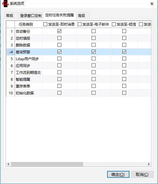 若备份失败,希望发送不同提醒消息给admin等用户,可在【系统选项】-【定时任务失败提醒】中设置对应的任务类别。