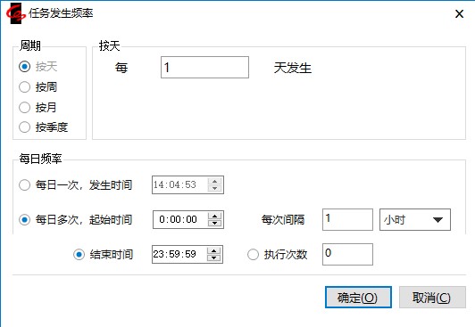 6.点击【设置…】按钮,弹出“任务发生频率”窗口。设置备份频率。