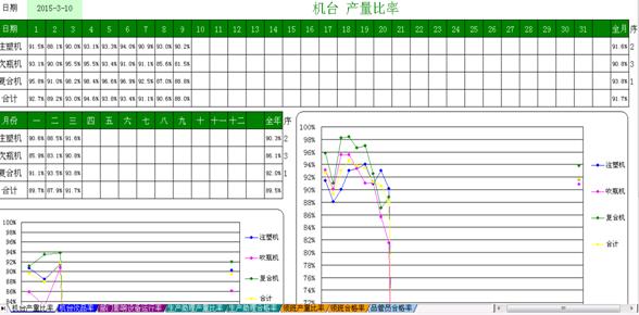 2、效率图表:详细登记生产数据,以图表反映机台、操作工、管理人员的每天、每月的效率情况。