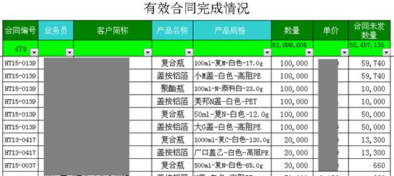 3、销售合同完成情况:根据合同销售,掌握合同完成情况。