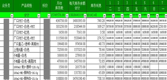 5、业务员库存利息:计算出各业务员每天库存余额,汇总出每月利息额。