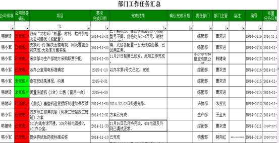 6、工作任务汇总:确认各部门主管近期任务,落实检查,确认后,评比考核。