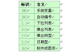 每个字段名后的中括号内为输入方法标志,每个标志的含义见下表。