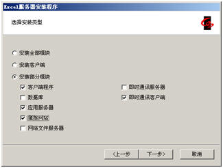 选择安装“客户端程序”、“应用服务器”、“填报网站”和“即时通讯客户端”: