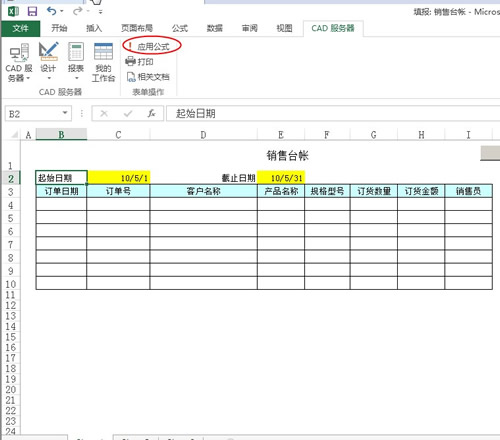 - 新填一张《销售台账》,输入起始日期和结束日期
