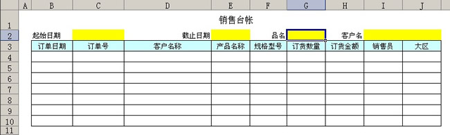现在进一步改进《销售台账》模板,在表头再增加两个条件:产品名称和客户名称,