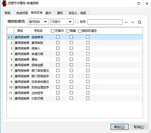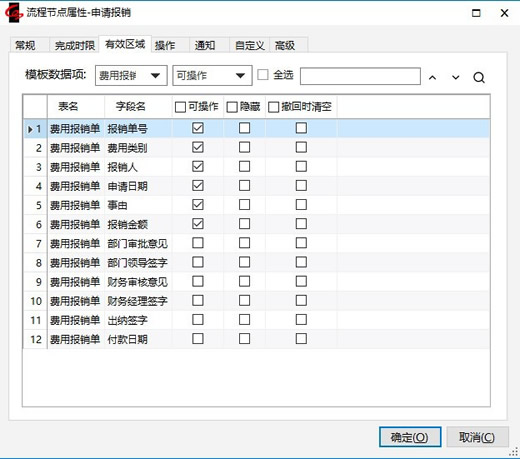 因为一个模板上会定义多个数据项,但不一定是一次填写完成,而是在表单的流转过程中,在不同的步骤,由不同的人填写不同的内容。所谓任务的“有效区域”,指的是在本步骤,哪些数据项可填。