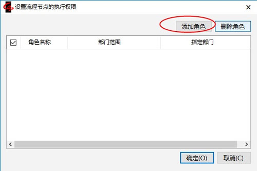 2.弹出“设置流程节点的执行权限”窗口,点击【添加角色】,弹出“选择角色”窗口。