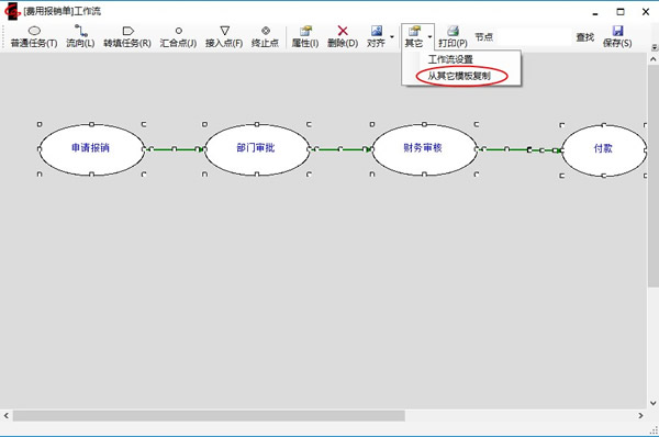 要定义的工作流如果在其它模板有类似的工作流,可通过【其它】-【从其它模板复制】来复制工作流,快速定义工作流。