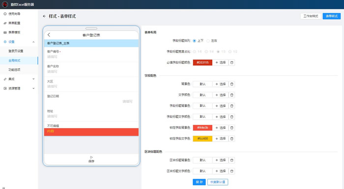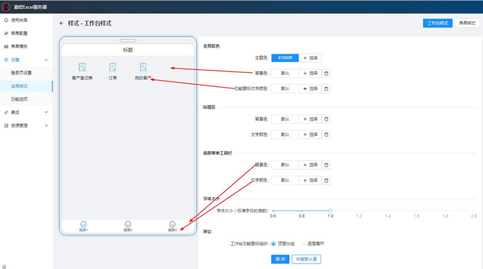 【全局样式】中可进行“工作台样式”和“表单样式”的设置。