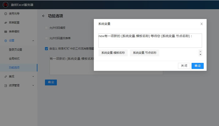 1.若企业微信,钉钉等收到的工作流提醒消息头默认的内容不符合需要,想要自定义显示的内容,也可在此处设置“自定义微信/钉钉中的工作流消息提醒消息头”: