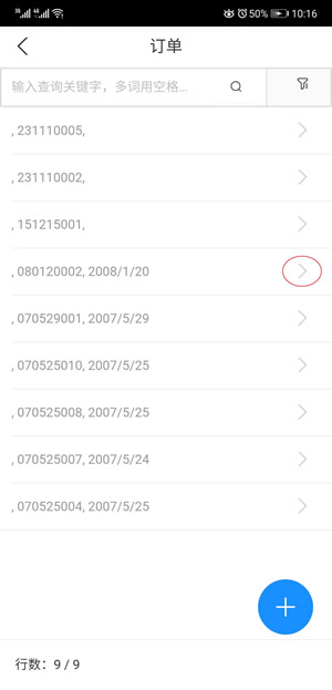 下面以订单的清单列表例来说明如何通过扫码查找表单: