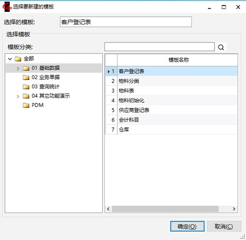 5.点击【1.选择模板】,在弹出的窗口下,选择要新建的模板名称。选择好后点击【确定】。回到上一层窗口。