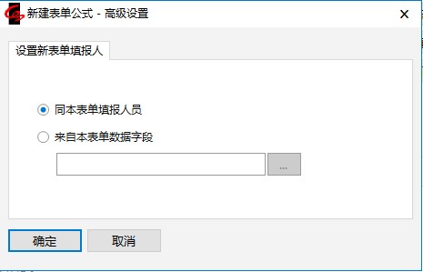 9.在“新建表单公式”的窗口上,还有一个按钮【高级】,点击此按钮,出现下面的子窗口,在此窗口上,可以设置新表单的填报人。