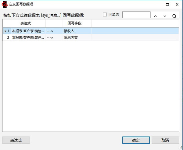 7.点击【回写数据项】按钮,弹出“定义回写数据项”窗口,输入如下,点击【确定】