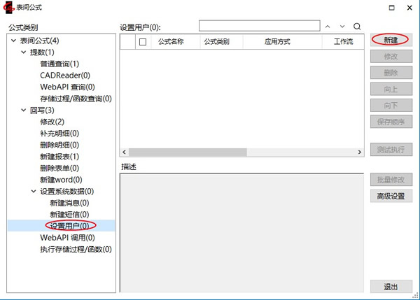 - 在左侧选择公式类型“回写-新建报表”,点击【新建】按钮。