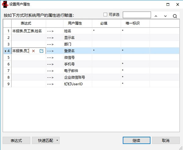 3.首先打开“设置用户属性”窗口,对用户属性进行赋值,默认完成了快速匹配。