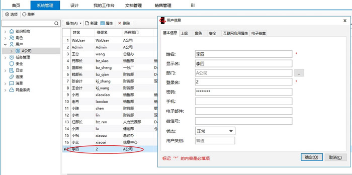 7.完成表单填报后,可在系统管理下的用户中查看到新建的“李四”新用户。
