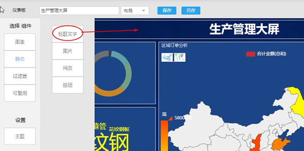 1.选择【静态】-【标题文字】,新建展示标题。