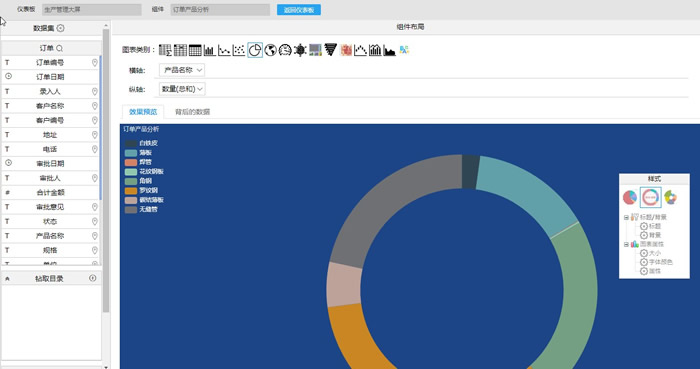 2. 拖动【图表】,选择“订单”,点击【确定】