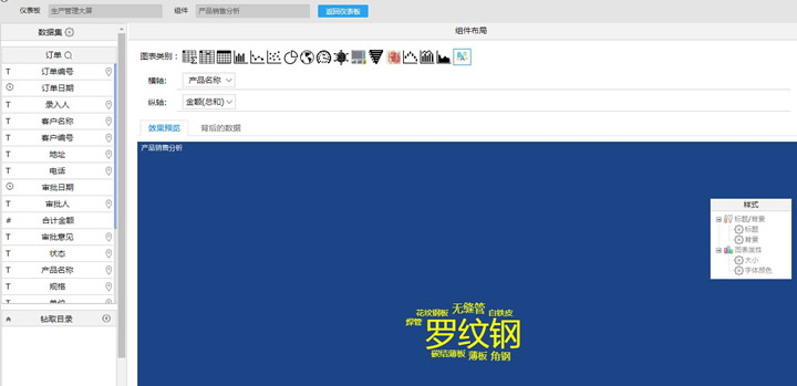 4.重复步骤2,“产品销售分析”的图表类别为“词云”,设置样式的属性后如下所示。
