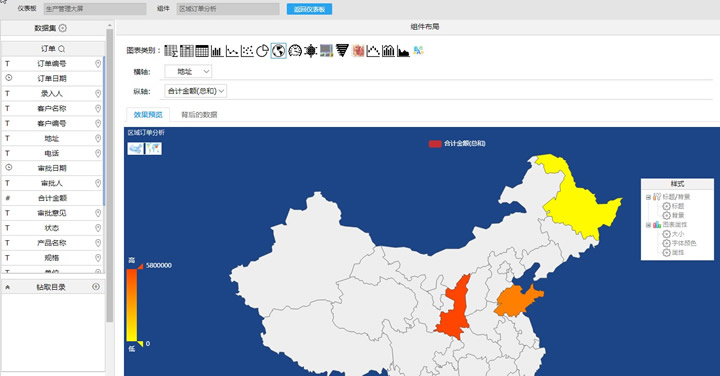 5.重复步骤2,“区域订单分析”为地图类别图表。