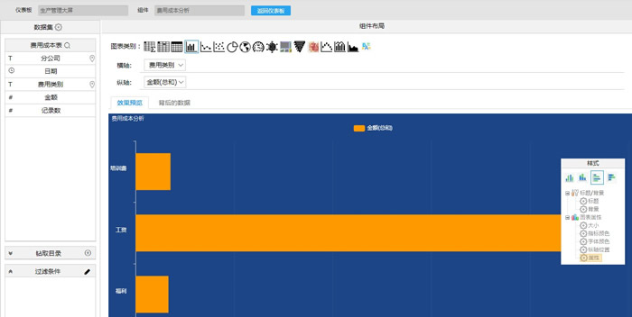 7.“费用成本分析”图表为“柱状图3”样式。