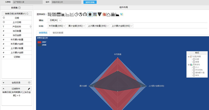 9.“销售年报分析”为雷达图,设置如下。