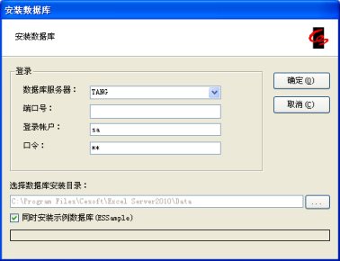 出现“安装数据库窗口”。
