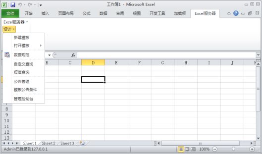 点击菜单【Excel服务器2010】--【管理控制台】,出现登录窗口,登录之后,进入管理控制台的主界面。在管理控制台中,我们可以: