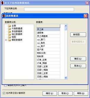 定义数据规范窗口上选择数据表的改进