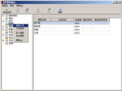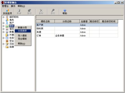 - 在管理控制台主界面左侧树形中选中“模板”,点击 鼠标右键 ,选择弹出菜单【 分类排序 】