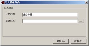 - 该窗口中列出了改系统已经建立好的分类,可以直接选择,如果需要建立新的分类,点击【增加】按钮,弹出定义模板分类窗口,上级分类选择空,在分类名称中输入“业务单据”。