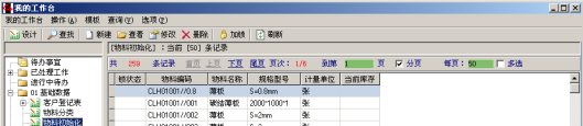 如图,在我的工作台右侧数据区域的上部,有一个翻页工具条,我们可以指定每页的记录条数,前后翻页、跳转到指定的页。