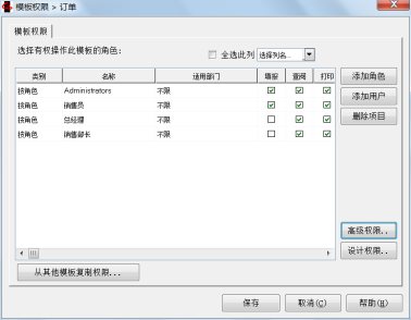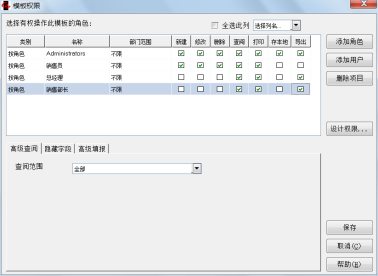 - 在“模板权限”窗口上,点击【高级权限 .. 】按钮,打开“高级权限”窗口